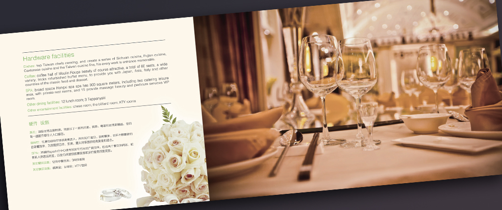 在該工作中,我們先實(shí)地考察參觀了該酒店,并與其市場(chǎng)部門經(jīng)理及人員溝通,知悉他們同業(yè)競(jìng)爭(zhēng)中的優(yōu)缺點(diǎn),以明確設(shè)計(jì)方向。組織專業(yè)攝影團(tuán)隊(duì),對(duì)該酒店的核心競(jìng)爭(zhēng)軟硬設(shè)施進(jìn)行了拍攝。